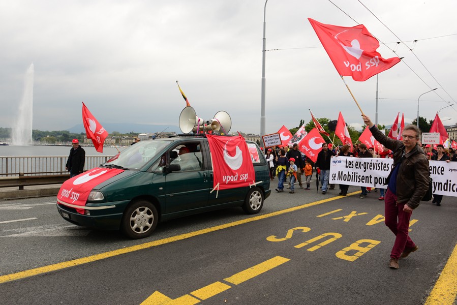 Cet après-midi à Genève plus de deux milles personnes sont descendues dans la rue à l’appel de l’Union syndicale suisse (USS), Syndicat suisse des services publics (ssp), les syndicats, les partis politique soutien avec cette manifestation, afin de dénoncer les cadeaux fiscaux, le démantèlement des services publics, le dumping salarial et d’apporter une solidarité contre les licenciements abusifs à l’hôpital de la Providence et les licenciements antisyndicaux. Ont pris part également à cette manifestation des partis politiques et d'autres syndicats.